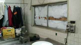 みるく茶屋のプレハブ冷蔵庫が倒壊